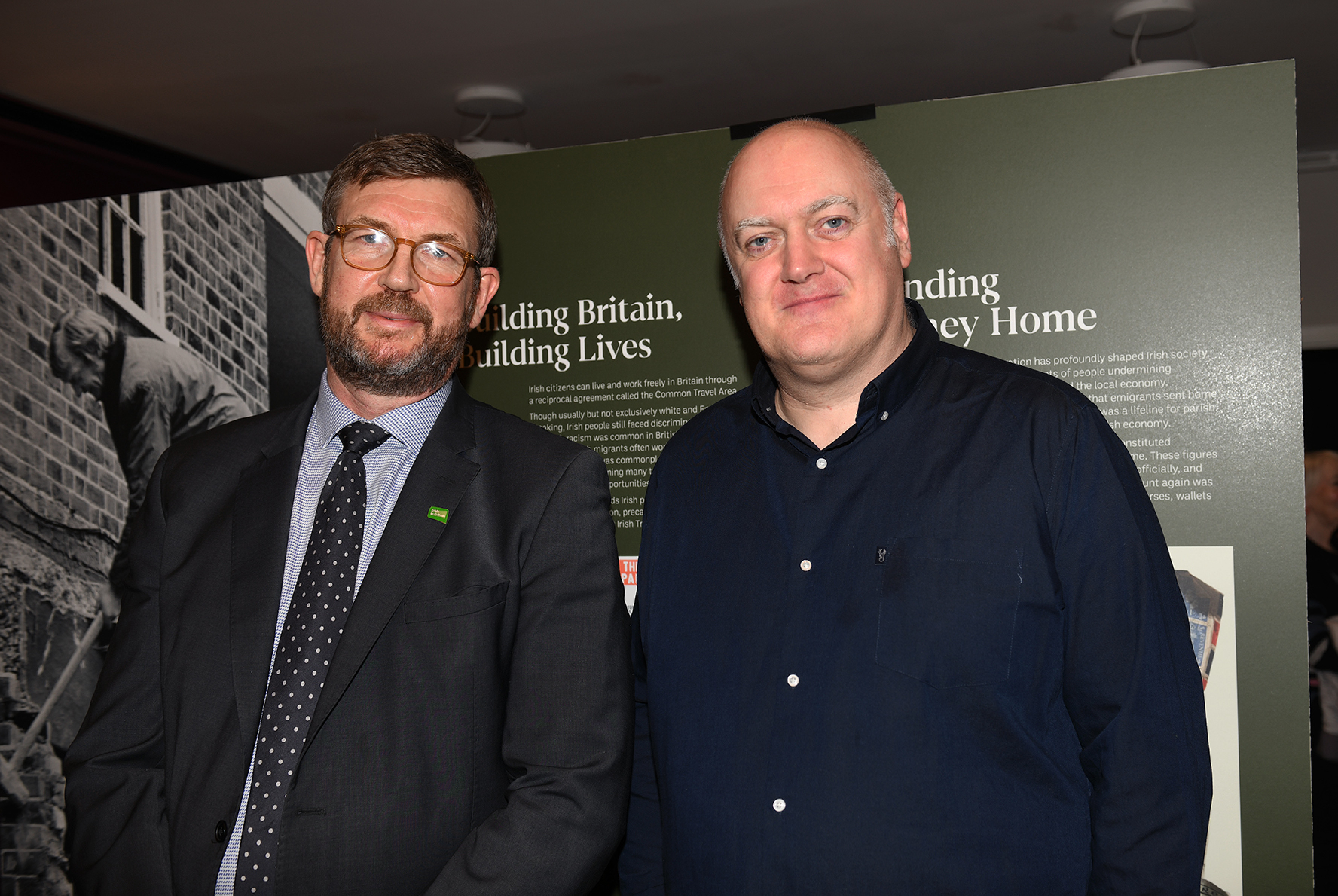 At the launch event on 30 November the Centre was packed for a private view, comedian and TV presenter Dara Ó Briain joined the audience and talked of the changing experiences of the Irish in “such a journey from no blacks no dogs no Irish in the 60s”.