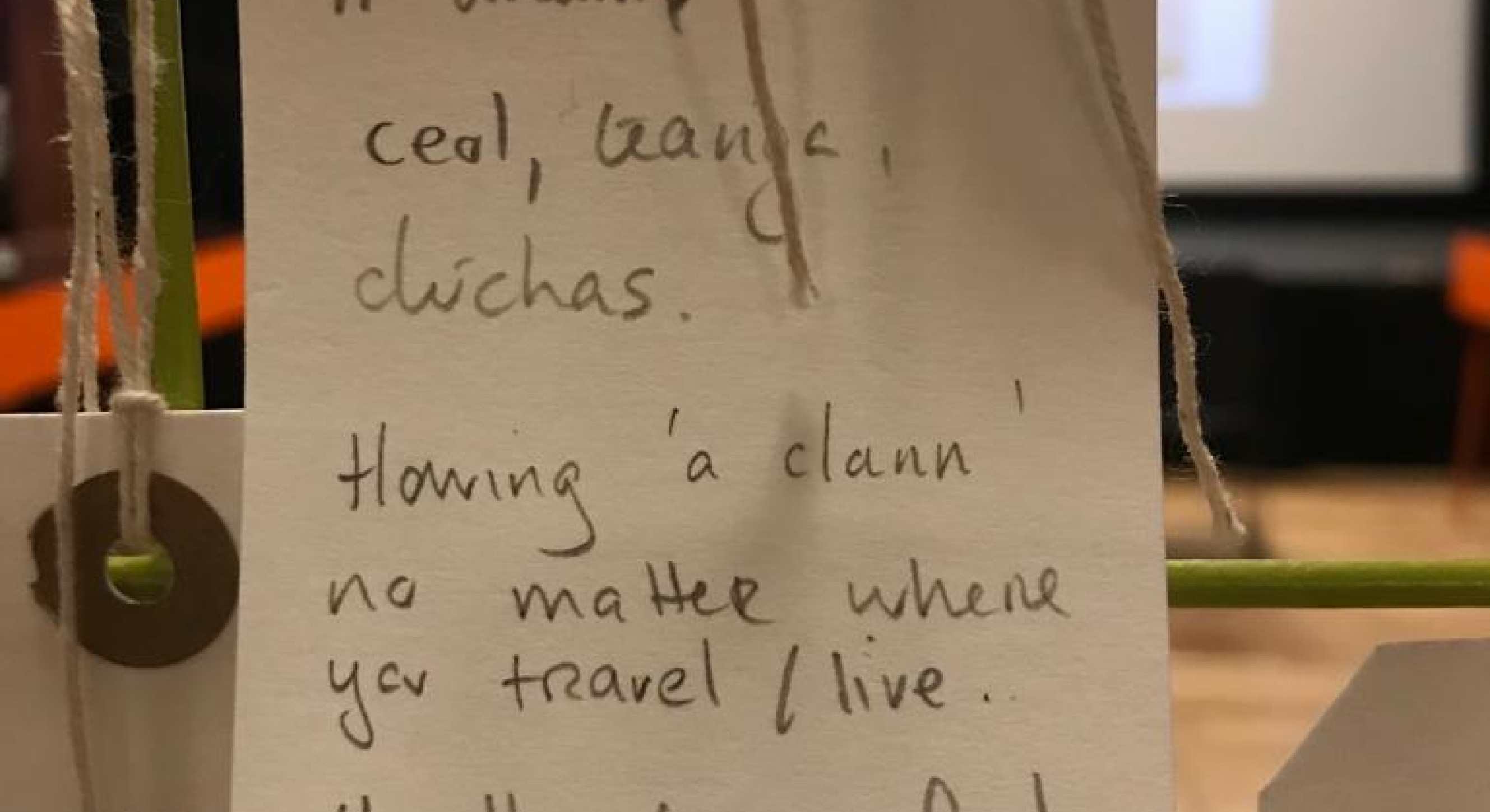 Themes include The Journey, Culture, Work and Activism and each includes a series of oral history clips to listen to. A metal grid map of Britain and Ireland stands in the centre of the exhibition and attendees are invited to add a comment with labels we provided that started 'To me, Irishness is...' (Click on 'Gallery' above for some of the messages)