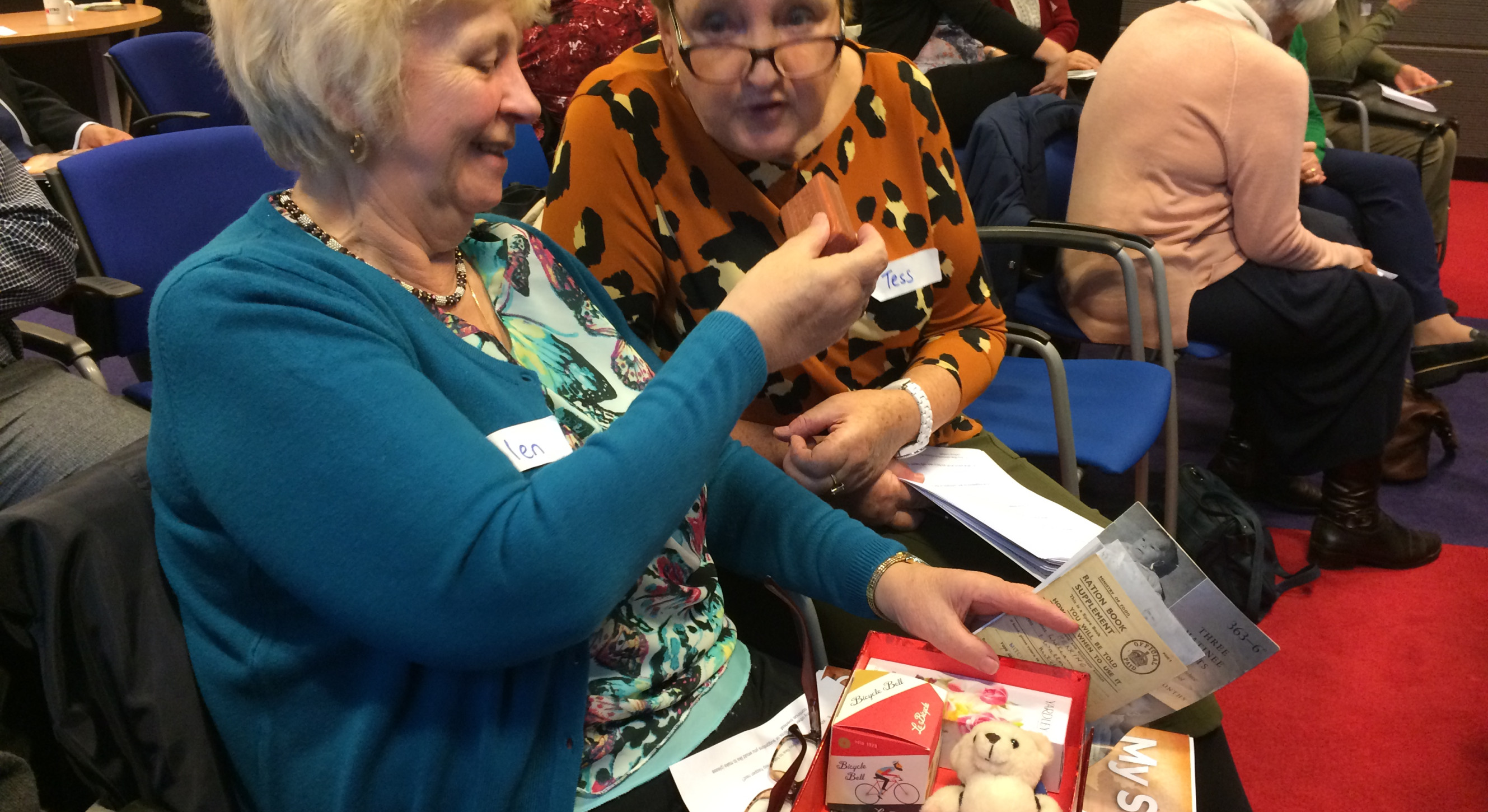 The gathering was an opportunity to catch up with old friends and meet new ones over healthy strawberries, grapes and melon, and our guests were able to browse our new books, explore our memory box with treasures from the past including old coins, life buoy soap, perfume, old photographs and a ration book and discuss ideas for memory boxes.