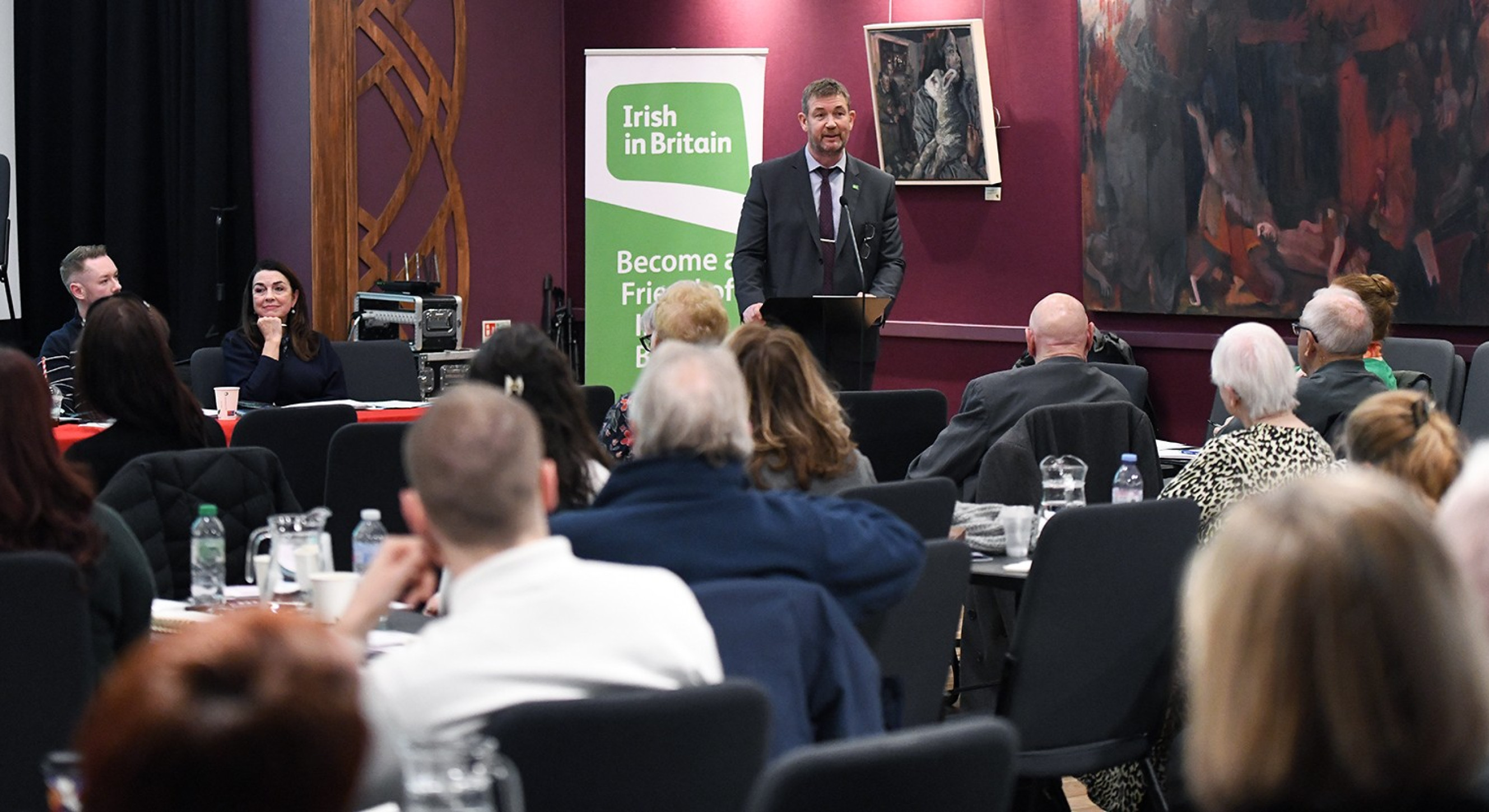 Gerard, who had served a year as interim chair talked about his family’s roots in a story of migration from Ireland that echoed those of many in the room. His grandparents left Mayo in the 1950s and later returned, others stayed “working as nurses in the NHS or as labourers, down pits and on the roads – part of that great generation who helped nurse and build Britain.”
