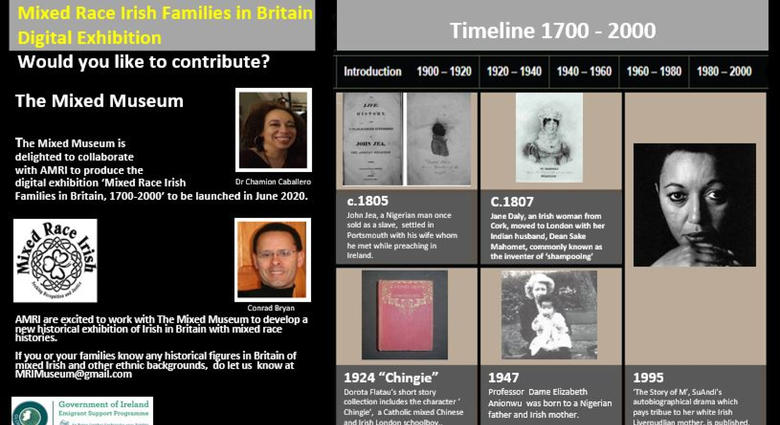 If you know of anything or anybody who should be included in this new exhibition, the Association of Mixed Race Irish would love to hear from you. Email mailto:mrimuseum@gmail.com