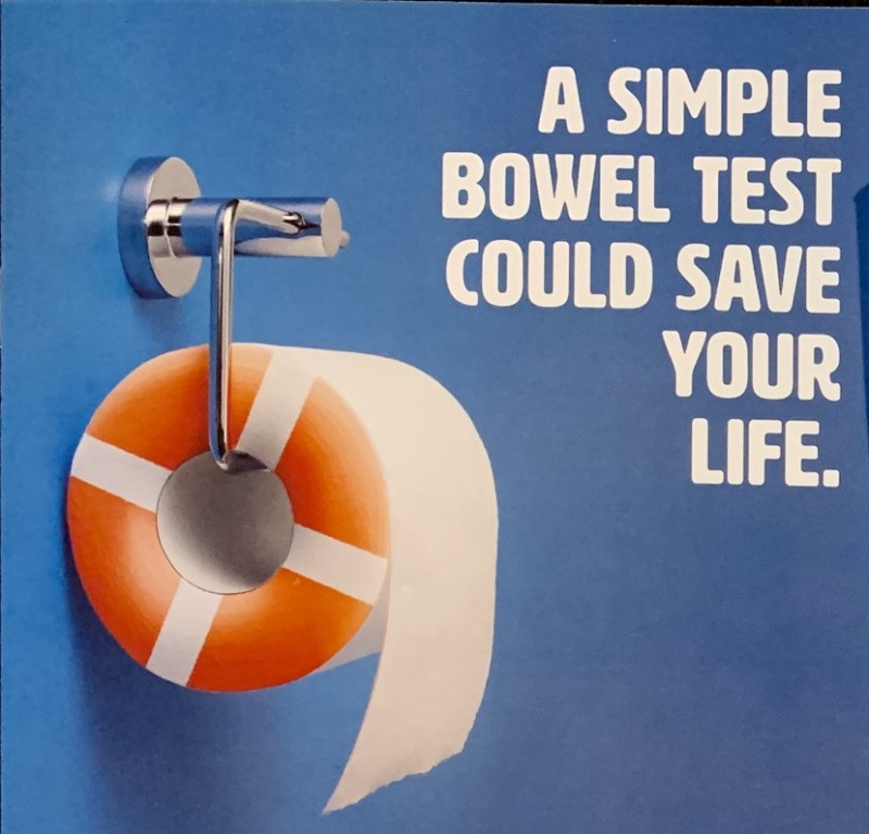 So if you receive a test kit in the post, don’t put it off, do it as soon as possible and return it in the freepost envelope provided. Remember, you could stop cancer before it starts!’