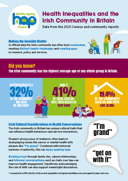 We have created workshops on healthy ageing and health inequality among the Irish in Britain.