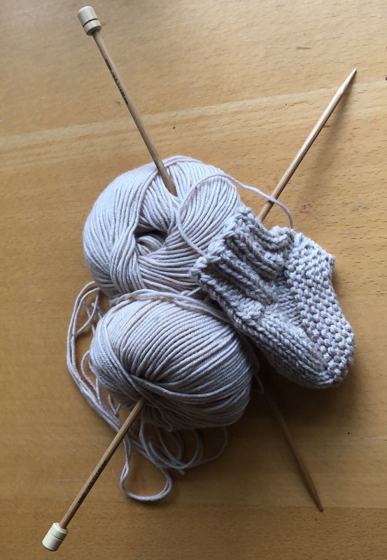These days, where people cannot physically gather in one location to knit, there are lots of creative uses of technology to enable people to feel connected knitting. Virtual meetings can be set up for people to come together. For people who may find using a laptop or i-pad or computer challenging, there may be other technology that can help. See for example our Irish in Britain pilot of KOMP technology.