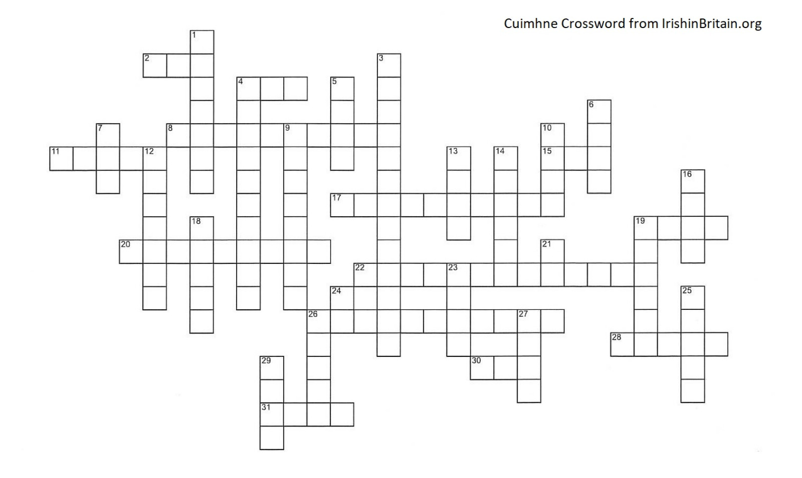 Crosswords are great for keeping the brain active. This crossword has been designed by our Cuimhne team at Irish in Britain.