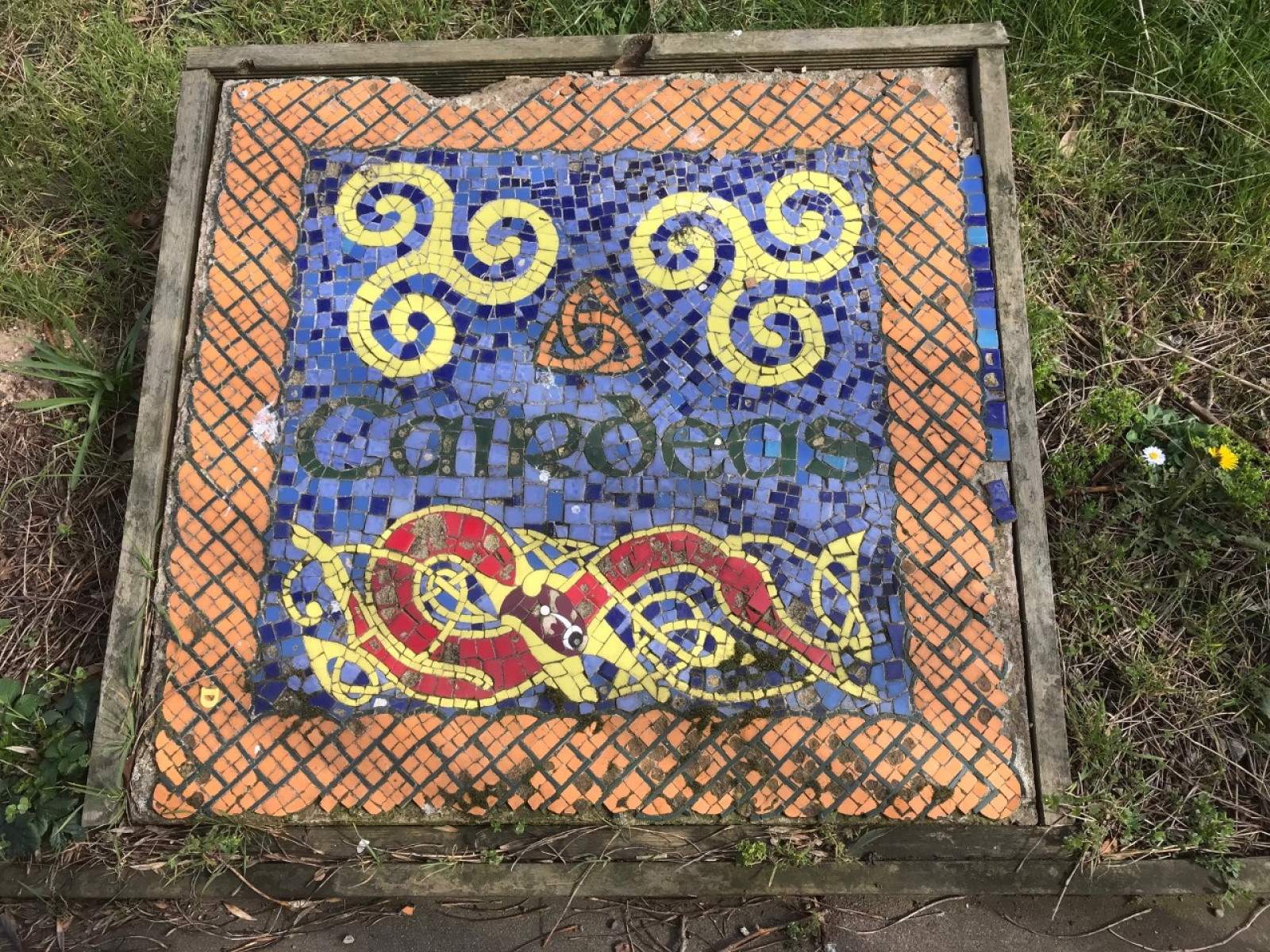 Garden tiles saying welcome in Irish