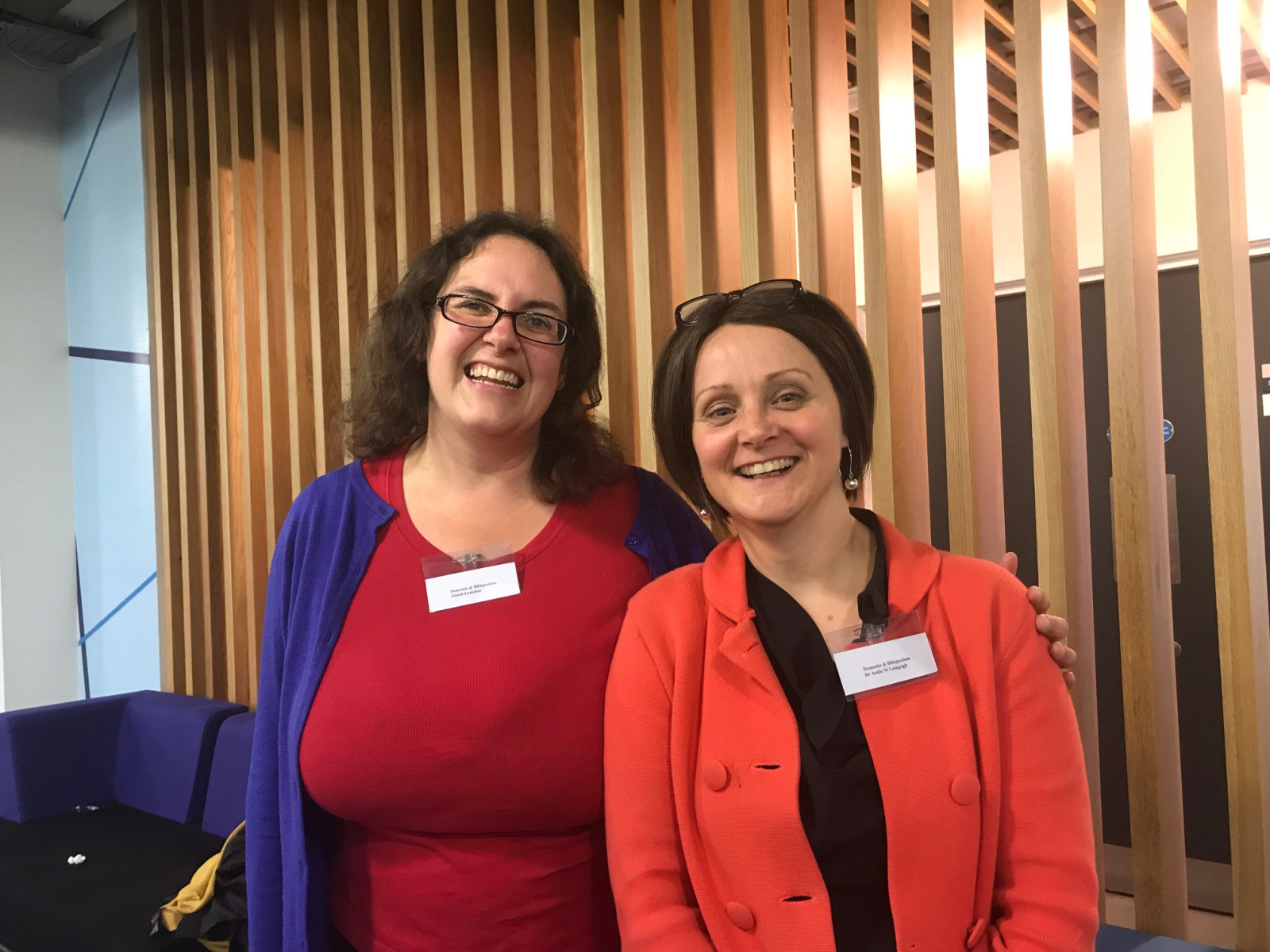 Cuimhne Coordinator Zibiah with Dementia and Blingualism conference coordinator Dr Aedin Ni Loingsigh from the University of Stirling