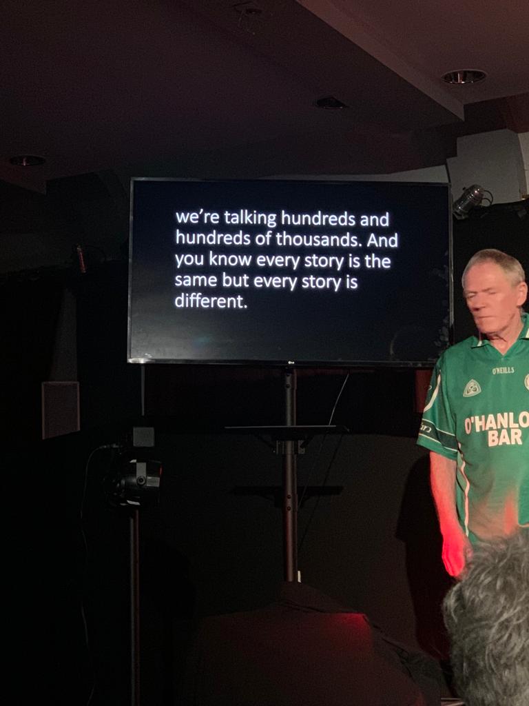 Maura Traynor, one of the cast, shares how after her father’s death due to a no warning bomb in Taynor’s bar her mother feared speaking about it. She was worried it might lead family members to become involved in revenge. When family members began to share memories after contact from the Historical Enquiries Committee, Maura’s mother was living with dementia and could not talk about it.