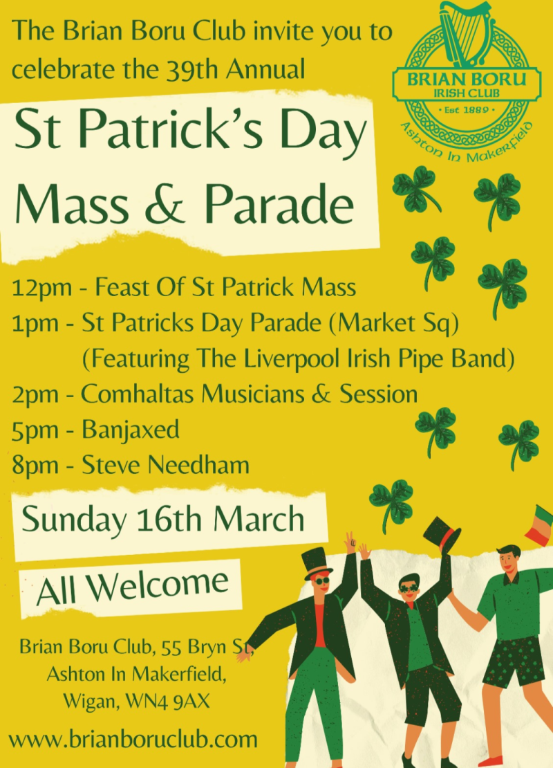 The parade will then make its way back to Warrington Irish Club where there will be an afternoon of good food and entertainment including Warrington Pipe Band and the children of Robinson Irish dancing academy.