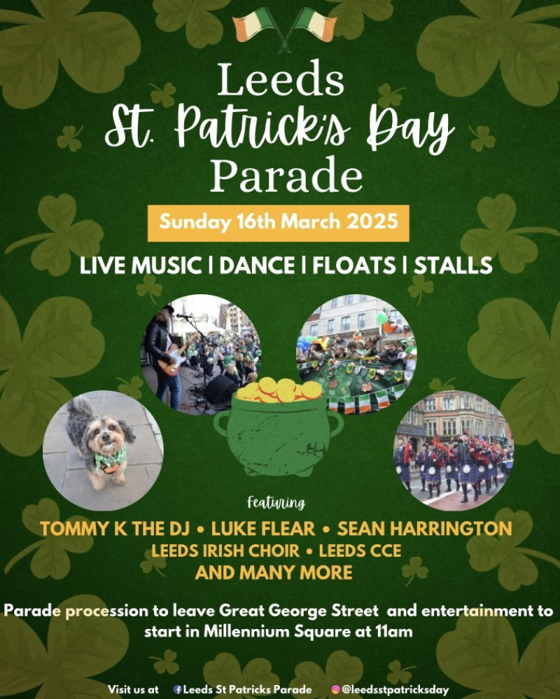 This community-led event is coordinated by the Leeds St Patrick’s Day Parade Committee, with support from Leeds City Council, local sponsors, and the Government of Ireland Emigrant Support Programme.