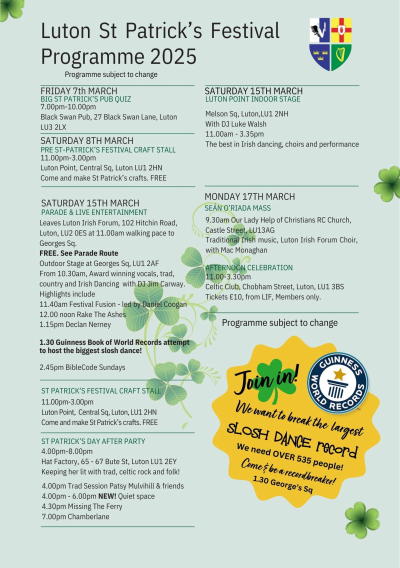 Find out about all the events and activities in Luton for St Patrick's Day HERE.